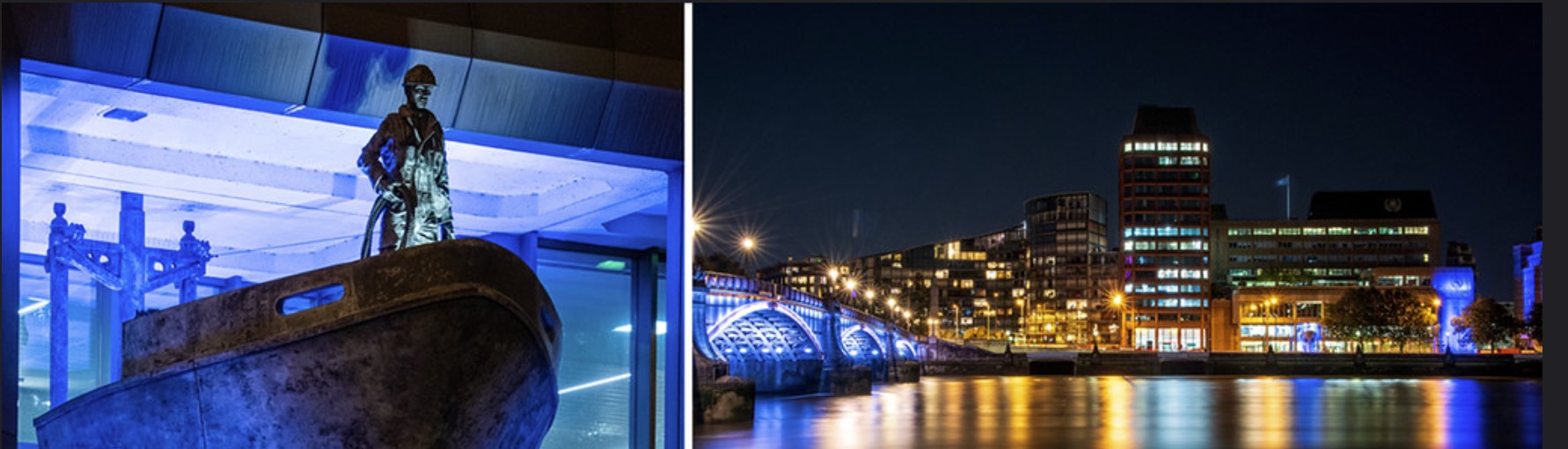 - Iluminación de edifios emblemáticos. La sede de la OMI se iluminará de color azul en la noche de ese día para promover el lema de este año. La OMI invita a los Estados Miembros, las organizaciones intergubernamentales en colaboración con la OMI y las organizaciones no gubernamentales con carácter consultivo ante la OMI a iluminar edificios emblemáticos. Puede ver la galería de fotos aquí. Lea más detalles aquí.